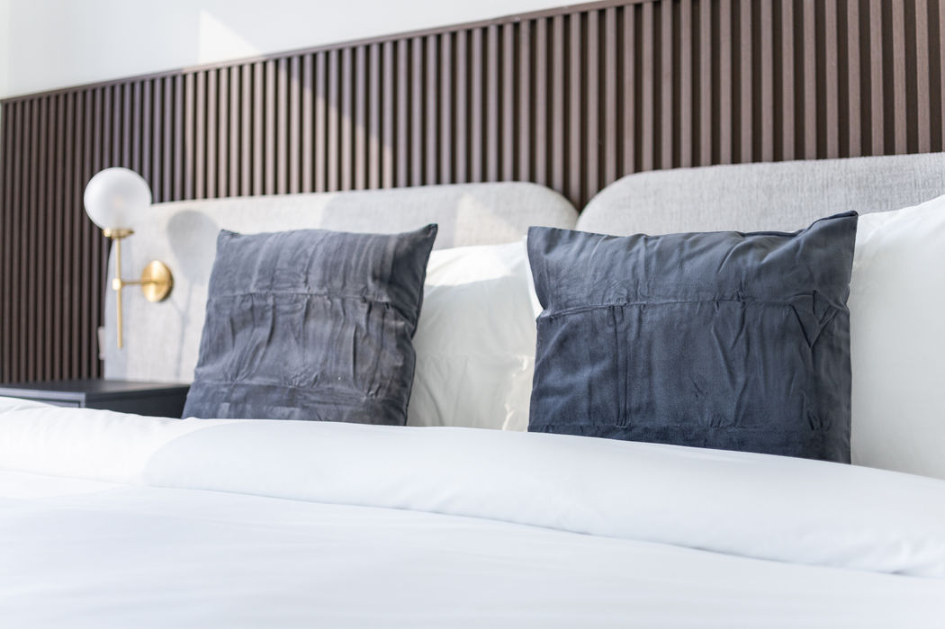 The furnishings were carefully selected to complement the color scheme, adding warmth and depth to the space. The result is a modern, comfortable retreat that offers a balanced blend of simplicity and elegance, perfect for an upscale urban getaway.